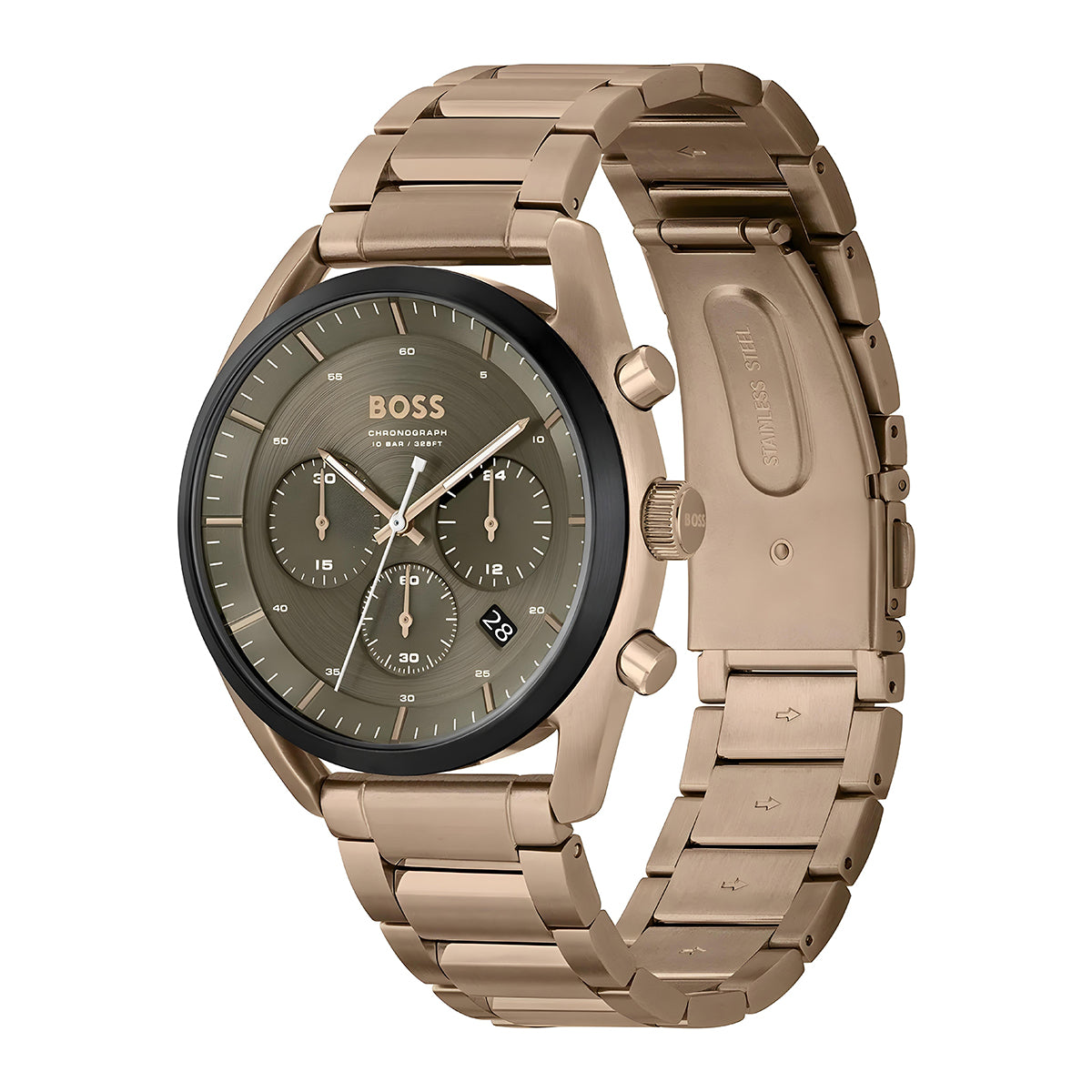 ساعة هوغو بوس كرونوغراف للرجال هي ساعة لا غنى عنها لأي رجل عصري. بفضل حزامها المصنوع من السيليكون الأنيق ولون قرصها الزيتي الأنيق، تتميز هذه الساعة بالأناقة والرقي. مثالية لأي مناسبة، كما أنها مزودة بخصائص كرونوغراف لمزيد من الوظائف. ارتقِ بمظهرك مع هذه الساعة المصنوعة بخبرة.