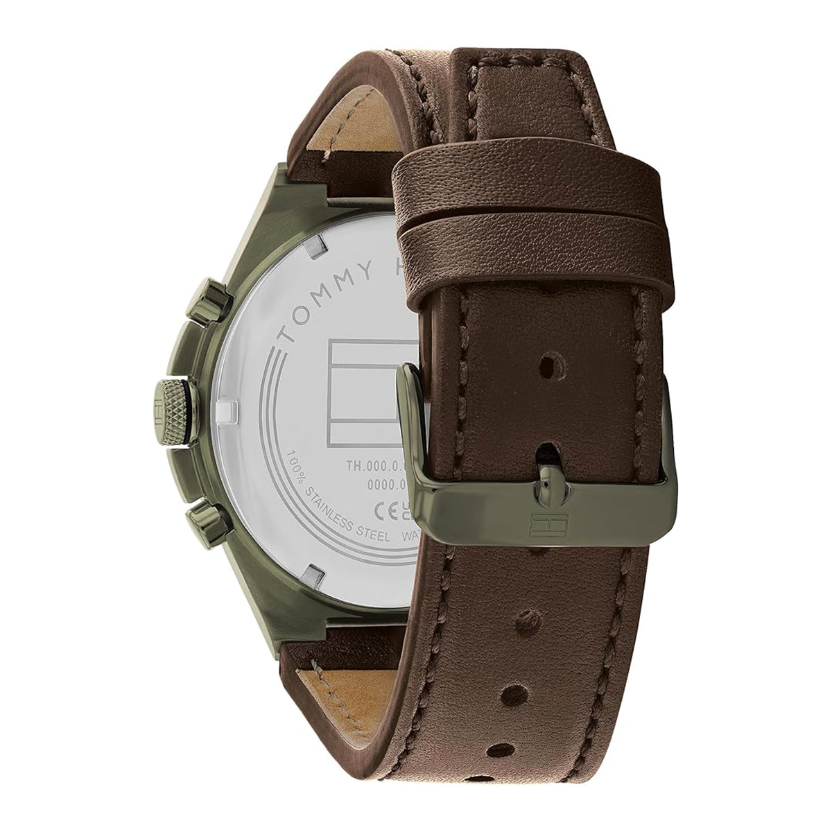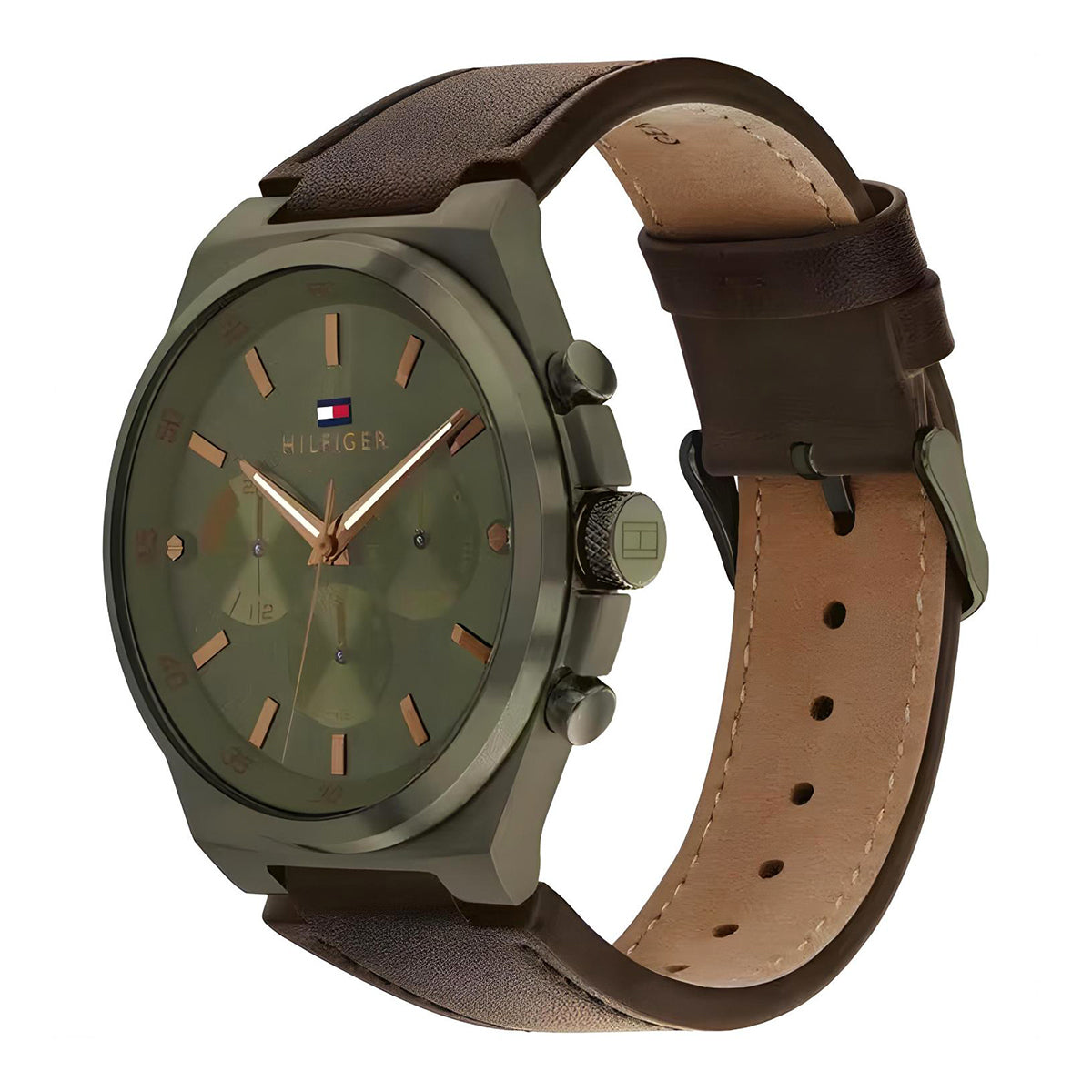 ساعة تومي للرجال بسوار من الجلد ومينا باللون الأخضر