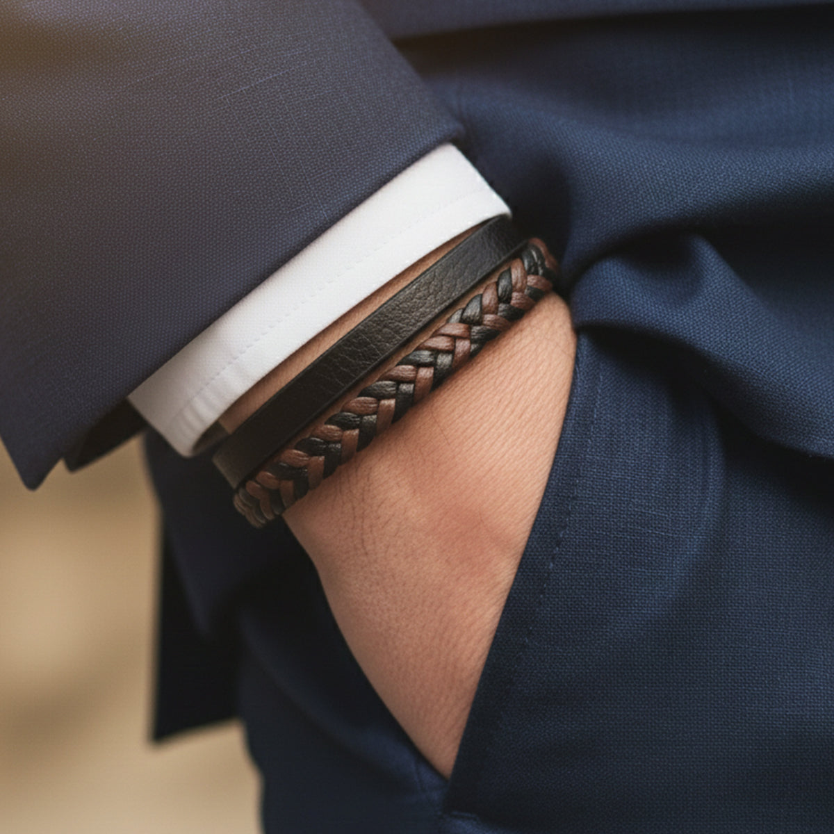 -أربعة أشكال متعددة في قفل واحد، جلد طبيعي أسود