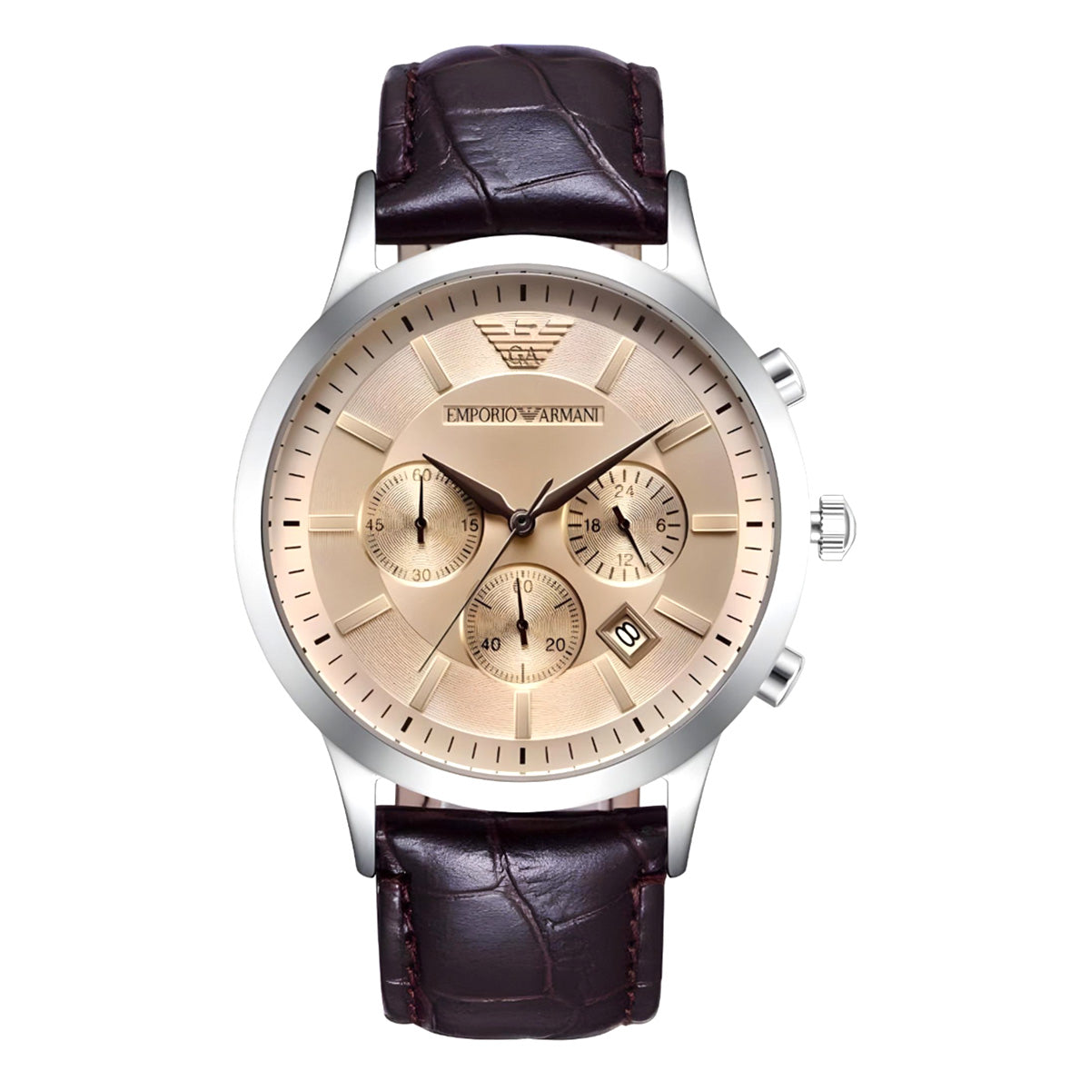 The AR2433 men's watch features a sophisticated beige dial complemented by a rich brown leather strap, creating a timeless and versatile accessory. Designed for those who appreciate classic elegance, this timepiece offers reliable performance and a polished look suitable for both formal and casual occasions. Its refined design ensures it seamlessly enhances any wardrobe, making it an essential addition for the discerning gentleman.