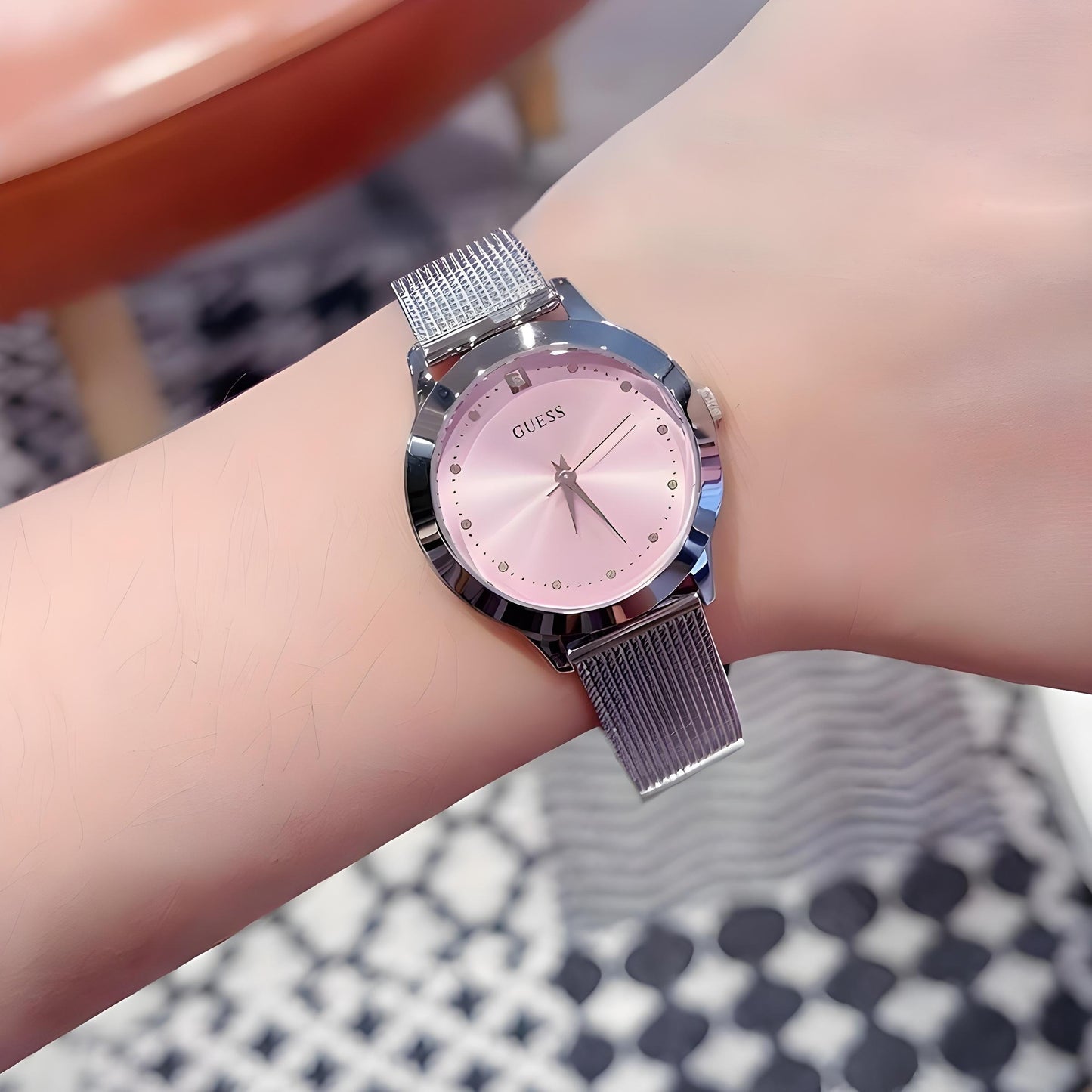 GUESS Ladies Silver Band with Pink Dial Watch | W1197L3