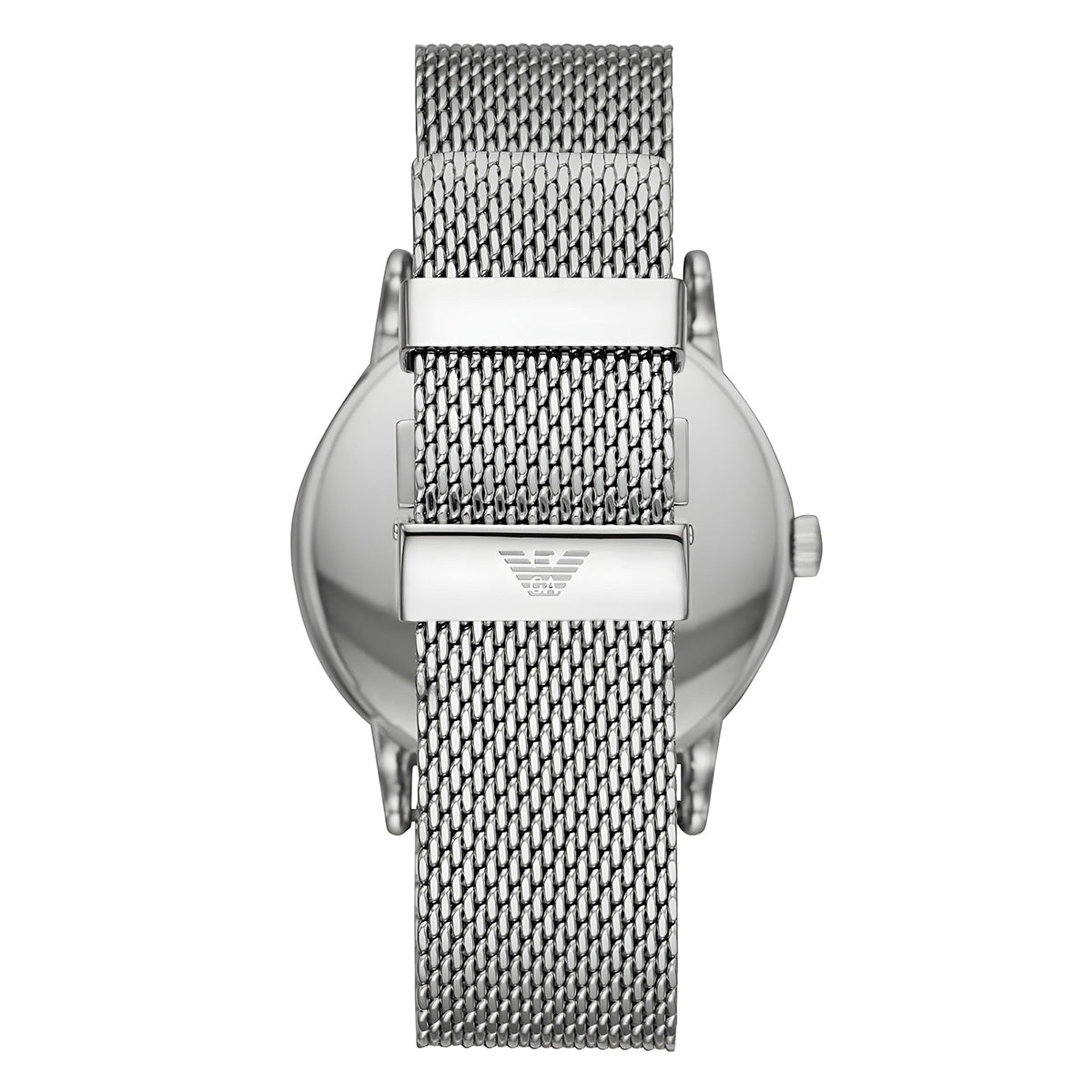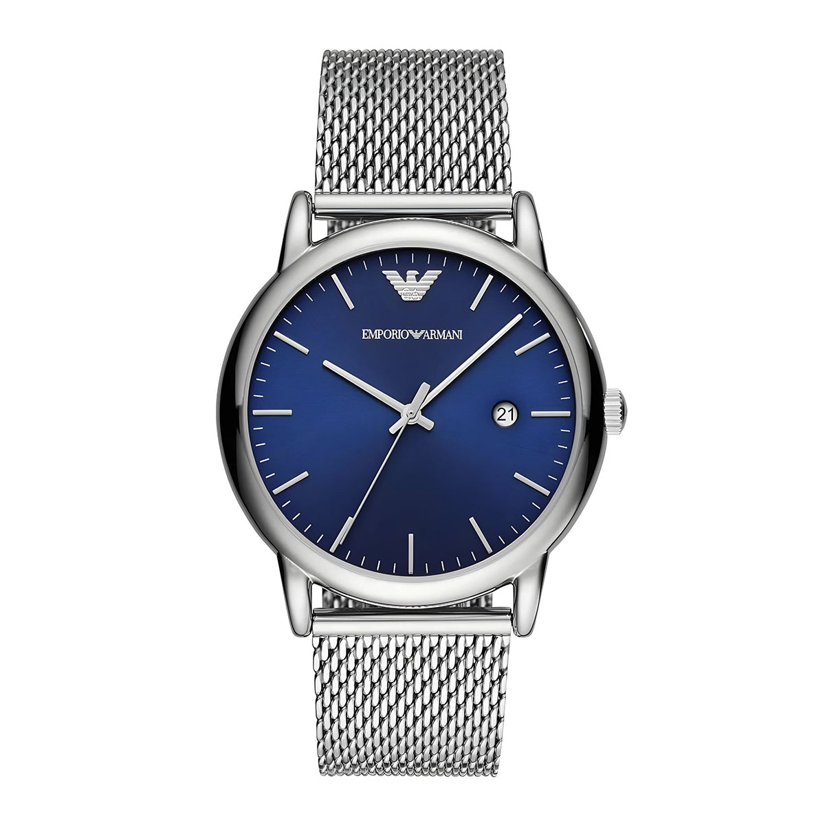This distinguished AR11230 timepiece showcases a meticulously crafted solid blue dial harmoniously paired with a precision-engineered silver strap. The sophisticated color contrast creates a refined aesthetic suitable for the discerning gentleman who appreciates horological excellence combined with versatile styling capabilities.